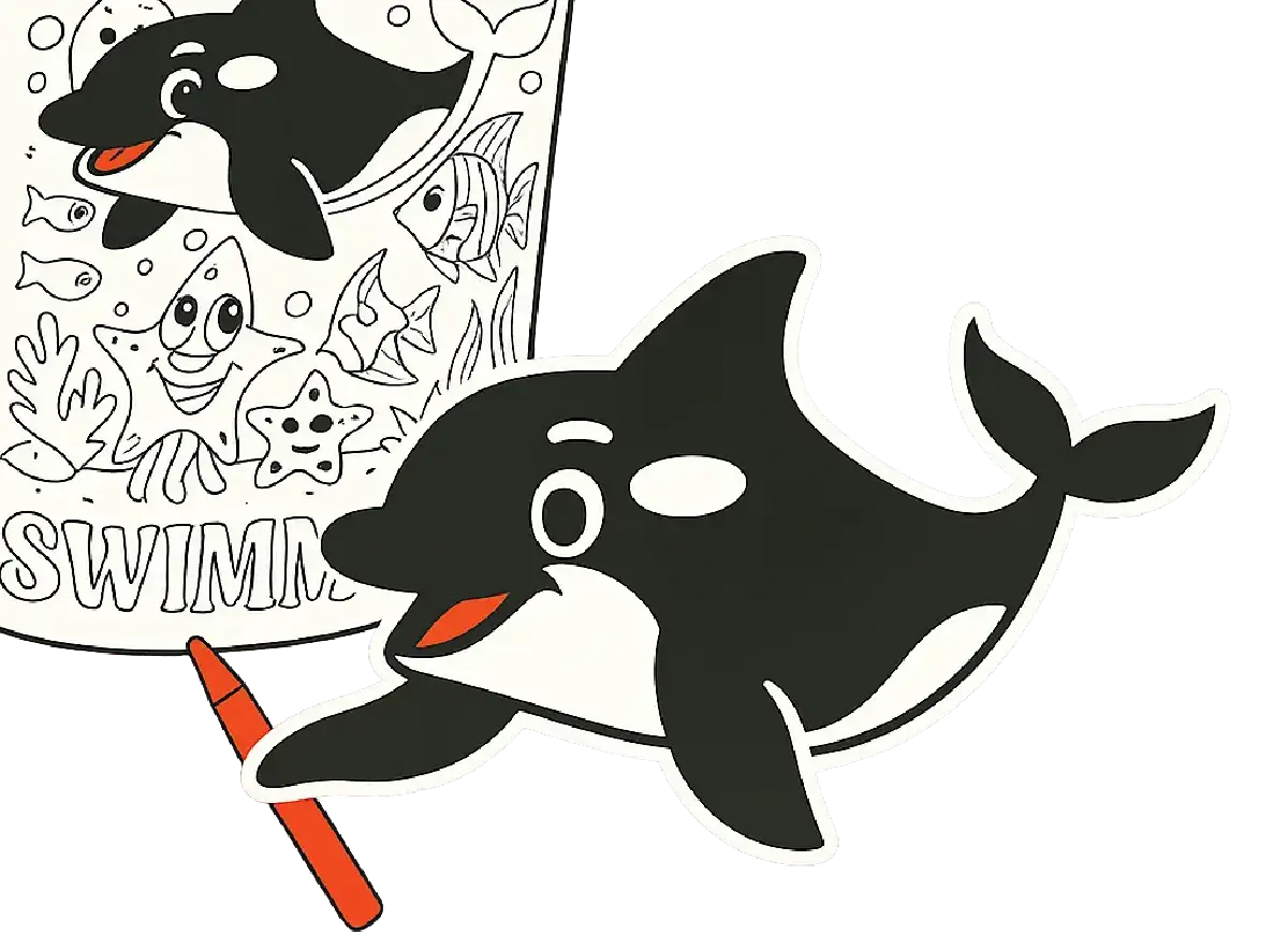 Fancy colouring? Bring your best pens to bring Olly the orca and his friends to life.